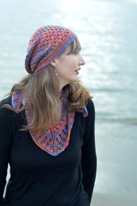 Slip stitch patterns are great for variegated yarns. They break up the palette and provide points of visual interest that aren’t disturbed by a riotous splash of color. By staggering Mrs. Hunter’s Pattern, the Shetland eyelet and slip stitch motif used in so many lovely projects, the color is broken up further into what looks to me like daubs of paint from an Impressionist masterpiece. Whether you choose to knit it standard or extra slouchy, this drapey beret is sure to look marvelous on you.