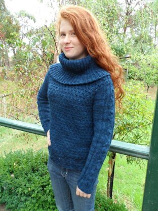 A fitted, textured pullover with cabled and bobble sleeves and a Cowl collar, in alpaca and merino.