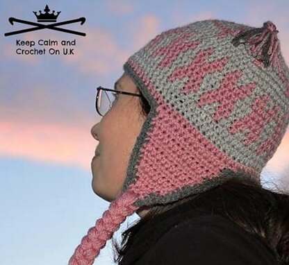 Companion to this hat is the Inca Trail Men's hat also available from my store: http://www.ravelry.com/patterns/library/mens-inca-trail-beanie---earflap-hat