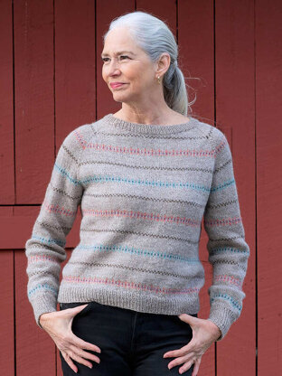 This modern colorwork pullover is knit from the top down with raglan shaping and simple stripes. Pair your favorite Color Pack with a coordinating main color to create a personalized sweater you’ll love.