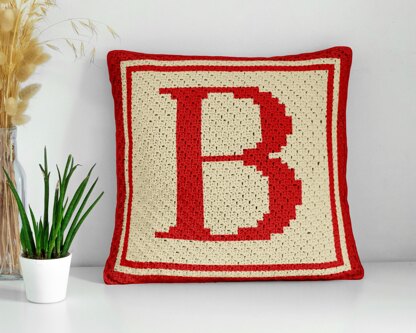 Initial Letter B Pillow Mini C2C Crochet Pattern Bordered Cushion ABC Name Bolster