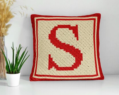 Initial Letter S Pillow Mini C2C Crochet Pattern Alphabet Name Bordered Cushion