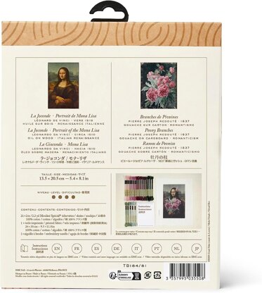 DMC Inspired by Mona Lisa & Peony Branches, Leonardo Da Vinci & P.J Redouté, Le Louvre, Embroidery Kit