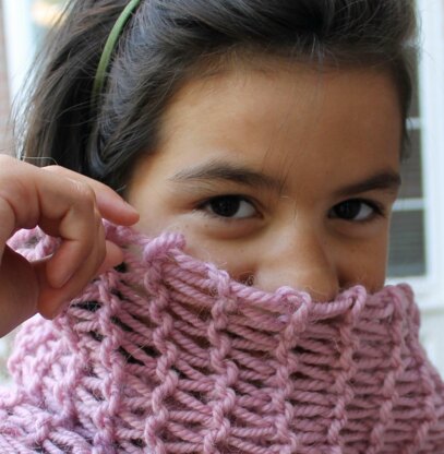 The cowl and hat use 1 skein each of bulky weight yarn. A simple two row pattern repeat makes this a great beginner project, an ideal last minute knit or a quick stash buster for more experienced knitters.