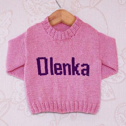 The pattern comes with written knitting instructions for 4ply sweater 0 - 5 years and the Name chart pictured. Moniker name sweaters make great gifts for newborns. You can knit the back and sleeves before baby is born and finish the front once the name has been announced. The sweater can then be kept as a keepsake, hung in the child’s room, on the door or used to dress a toy. Not the name you wanted? No problem, leave a request on my site!