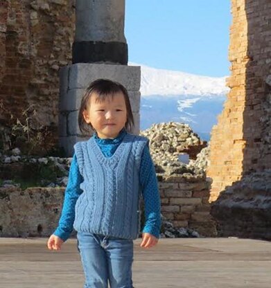 Ionia Vest is a simple vest for kids. Our family visited to Sicily in Italy this Christmas holiday and enjoyed beautiful scenery of the island. Especially the view from Il Teatro Greco(Greek theater) to the Ionia sea was the best. So I would like to name my newest design after this beautiful sea. This vest knits up quickly with bottom up,working in the round. Why don't you cast on with your favorite yarn?
