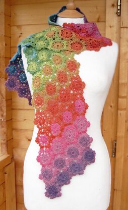 Iris is named after the ancient Greek goddess of the rainbow. Iris is made with hexagon motifs; each motif is 2 colours and the colours blend into a beautiful rainbow.