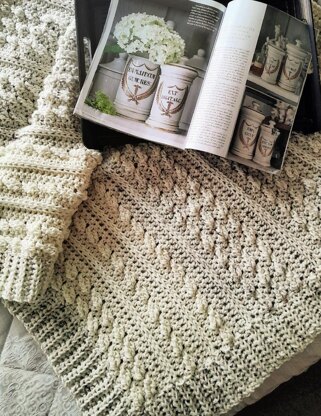 Materials: You may use yarn and hook of choice with this pattern. Sample blanket used... • Aran worsted weight yarn – approx. 1800 yards • Crochet hook size K (6.5 mm).