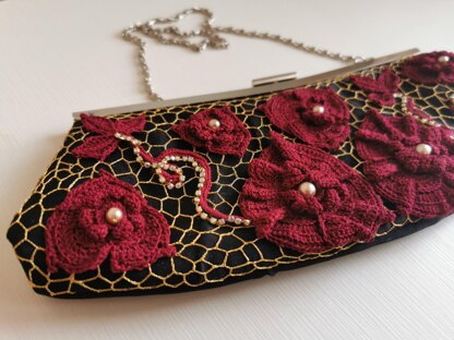 In this pattern I show how to make crochet décor for clutch. To make it I worked on Styrofoam plate, and then sew in on top of ready made clutch. Using this tutorial you can make an Irish crochet lace applique for any size of your bag or clutch.