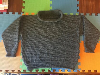 This sweater is worked in a round from the bottom up. The sleeves stitches are picked up and knitted on. Irish Moss stitch is used. It has a drop sleeve and is popularly worn short.