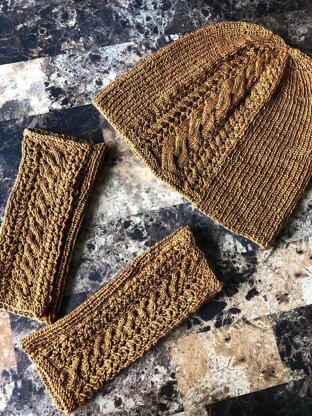 If you make the hat first, you can make the matching mitts with your leftovers. Just divide your leftovers in half and knit the first mitt until you’re happy with the length or you start running short of yarn!