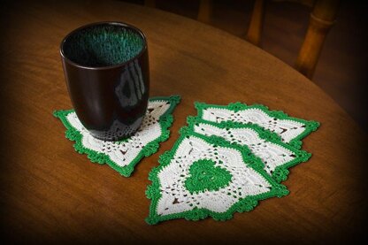 Celebrate your Irish heritage and protect your furniture with these unique Shamrock Coasters. The coaster features a shamrock center medallion and picot edging. Add a splash of color to your kitchen.