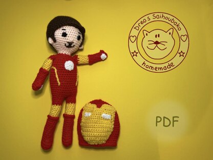 With yarn length 150m/50g this doll is about 30 cm high.