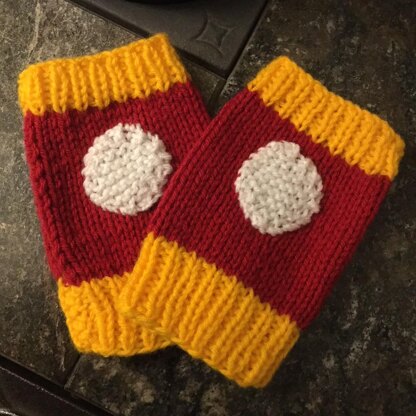 Iron Man Fingerless Mitts are an easy and quick knit. Using small amounts of three different colors, they are great for using up the leftovers sitting in your stash. Knit flat, these mitts would be suitable for an advanced beginner and beyond and would make a great last-minute gift for your favorite Marvel fan!