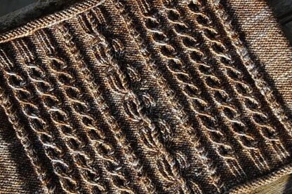 Sculptural twisted and cabled textures are set against reverse stocking stitch panels. This cowl shows off the semi-solid Vivacious yarn to beautiful effect. Don’t miss the small cables that add interest at the back. Skills used include working in the round, knitting through the back loop, crossing stitches and cabling. This is a pattern for a good intermediate knitter, or if you’d like to stretch yourself with new techniques.