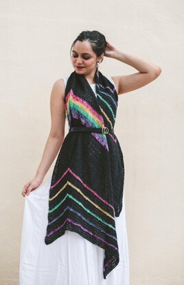 Irsia which translates to “Rainbow” in Parsi, is exactly what this shawl represents. It’s the rainbow that shines through after the rains when the sun comes up and brings new hope to the world. All the colours in the shawl cannot but bring a smile to your face as you make it. This shawl is not a quick make, but it is an easy make which is to be savoured as you make it.