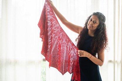 This is a crescent shaped wrap worked in one piece. Beginning from the top down, the lace panels grow out evenly into the depth of the shawl. A mix of lace and twisted stitches makes it a fun and interesting piece to work on.