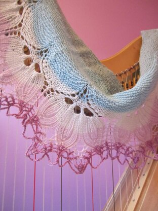 Finished Measurements Measurements do not include crocheted bind off. Depth (edge): 6 in / 15 cm Depth (center): 9½ (10) in / 24 (25.5) cm Outer edge: 78½ (86) in / 199.5 (218.5) cm Inner edge: 38¾ (56) in / 109 (142) cm