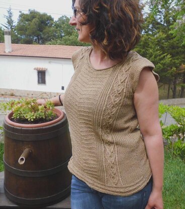 Yarn used for the original: CABLÈ, 100 % Egyptian cotton, 50 g = 125 m. The yarn comes from Campolmi Roberto Filati in Florence in Italy. The top takes 100 g less each size and the dress takes 200 g more each size.