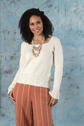 Inspired by the Lechfall Waterfall in Fussen, Germany, the Itinerant Pullover draws on its Bavarian roots with twisted stitches on the wide lower bands of the body and sleeves, and a narrow panel that runs the length of the sleeves. The slightly flared cuffs create a modern silhouette. This sweater is worked from the top down, starting in separate pieces for the front and back, then joined at the underarm, and the lower body is worked in the round with a shaped waist.