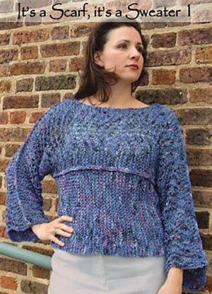 This sweater is a great transition project if you want to move from knitting scarves to completing an entire sweater. You knit up three scarves, then sew or crochet them together and voila! You have a sweater. It really is that easy!