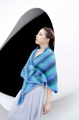 Trapezoidal in shape, the shawl features a structured shell pattern outlined in smaller shells and sparkling beads – adding a touch of whimsy to an otherwise tailored accessory.