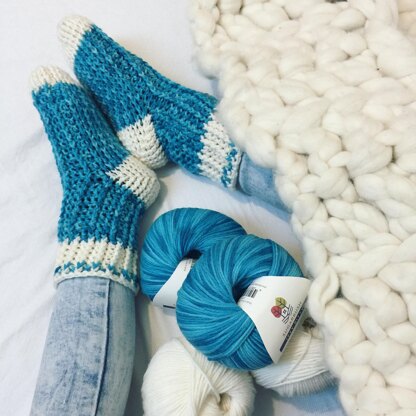 This is a pattern for cozy ribbed slipper socks! These socks are worked in front post stitches and dc stitches for a thick bulky design. Sizes are available in 0-6mth to L Adult and are perfectly suited for men and women. Pattern includes narrow and wide fit for adults. Choose wide for a loose slipper style sock or narrow for a more fitted design to fit into winter boots.