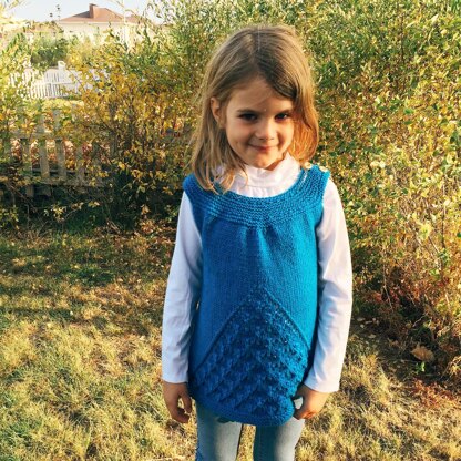 Ivaka is a tunic that looks great on its own for summer and over long sleeves for winter. Top down design, knit mostly in the round. Worsted weight yarn works well. The lace pattern is charted and written out. The adorable handmade buttons can be found in the Etsy shop: Katrinkles