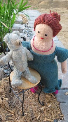 Izzy Wellington is a knitted/felted 18-inch doll inspired by the "unbreakable" wood and soft-bodied dolls made by Izannah Walker in the mid-1800s. All the pieces are knitted in the round. The 8-page pattern includes directions for making her hair with a circular knitting loom.