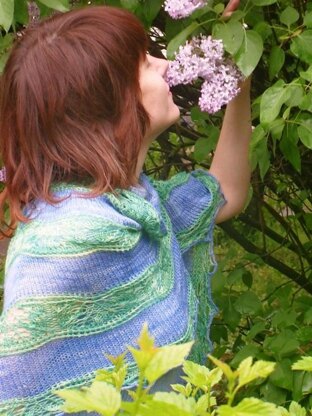 Dear knitters. Jacaranda is a triangular shawl, it is quite easy to knit. Gauge is not critical. It is possible to knit this shawl in two (I spent 1 skein of each color) or more colors, or make it in solid color. Pattern includes charts.