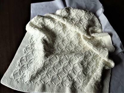 The blanket is knitted flat in one piece from the bottom up using a circular needle. It is suitable for a fairly experienced knitter. You will need to follow a 12 stitch/28 row pattern which includes cables and eyelets on right side rows only. The pattern is written and charted.