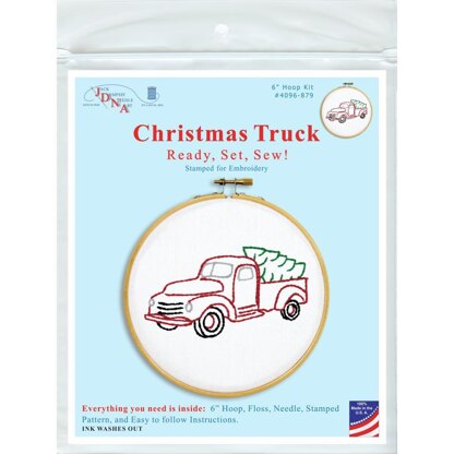 Ready, set, sew! This kit has everything you need to create a beautiful piece of art! This package contains one 6 inch hoop, floss, needle, stamped pattern and easy to follow instructions. Design: Christmas Truck. Made in USA.
