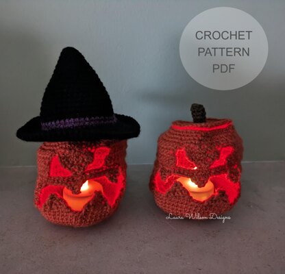 This is a PDF crochet pattern written in US terminology and contains lots of step-by-step photos to help you. You will need to know the following crochet terms: mr- magic ring ch- chain sl st- slip stitch sc- single crochet inc- increase invdec- invisible decrease sc2tog- single crochet 2 together FLO- front loops only BLO- back loops only Materials needed: ● DK yarn- I used Hayfield bonus DK in Burnt orange (647), Black (965), Chocolate (947), Amethyst (612) ● 3mm crochet hook ● Stitch marker ● Yarn needle ● Scissors ● LED battery powered tealight candle- I used a colour changing one When made with the stated hook size and yarn weight, the finished pumpkin will be approx 10 cm tall.
