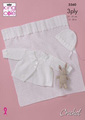 Jacket, Bonnet & Blanket in King Cole Big Value Baby 3Ply - 5560 - Downloadable PDF is a Intermediate Crochet pattern by King Cole, available as a Downloadable PDF and includes instructions in English. Super fun to make, this pattern could be your next masterpiece!