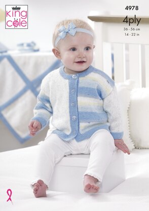 Jacket, Hat, Bootees and Blanket in King Cole Big Value Baby 4Ply - 4978 - Downloadable PDF is a Intermediate Knitting pattern by King Cole, available as a Downloadable PDF and includes instructions in English. Super fun to make, this pattern could be your next masterpiece!
