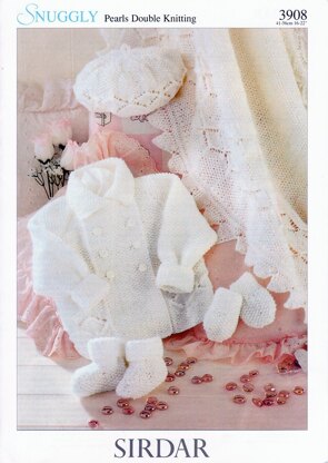 Jacket, Mittens, Beret, Booties and a Blanket in Sirdar Snuggly Pearls DK - 3908 is a Intermediate Knitting pattern by Sirdar, available as a Leaflet and includes instructions in English. Super fun to make, this pattern could be your next masterpiece!
