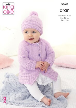 Jackets, Hat & Pram Blanket Knitted in King Cole Aran - 5620 - Downloadable PDF