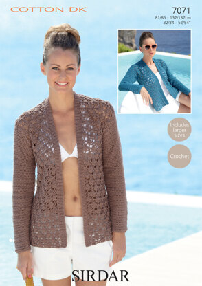 Jackets in Sirdar Cotton DK - 7071 - Downloadable PDF is a Crochet pattern by Sirdar, available as a Downloadable PDF and includes instructions in English. Super fun to make, this pattern could be your next masterpiece!