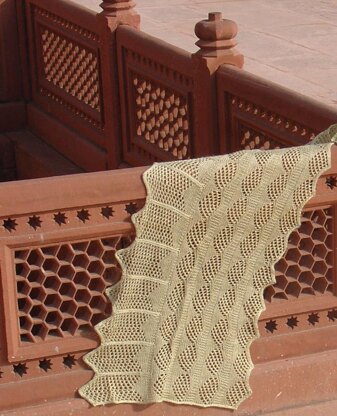 Jali is the term for a perforated lattice window screen. Widely used in ancient Indian architecture, jalis are most commonly carved out of stone, using intricate geometrical patterns. Windows with jalis served two purposes, one being aesthetically beautiful and the other more practical in nature; providing natural air conditioning--air gets cooler as it expands. When summer winds from the desert air threatened to overheat a building, the jali which invites natural air flow, cooled the building's interiors. I wanted to create an intricate design that also kept the skin cool in summer. My stole was thereby inspired by the use of jalis in numerous ancient Indian palaces that I encountered when I visited the Indian desert state of Rajasthan. These photos were taken at the Humanyun Tomb (New Delhi) which was a precursor to the Taj Mahal in Agra, India.