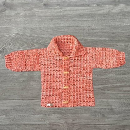 Create a cosy baby cardigan with a classic collar, worked seamlessly from the bottom up with no side seams, in sizes 0–3 months to 12–24 months. The sweater is easy to wear over everyday outfits, and makes thoughtful handmade baby gifts, perfect for gentle layering in any season.