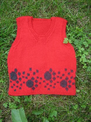 About the paws: This vest was originaly made for a dog person, she has two dogs, one really big and one tiny little and when walking in snow this is how their paw prints look like.