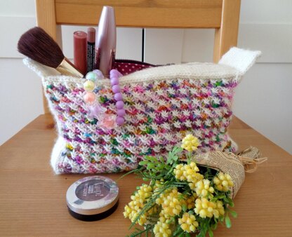 Jasmin Bag, another perfect little accessory to use for your cosmetics, knitting and crafts tools or just to carry your wallet, glasses and phone with you, zippered bag, fully linen, and knitting using the pretty star stitch and double knitting, pattern include picture tutorial and step by step instructions to make the complete project, you will love it!