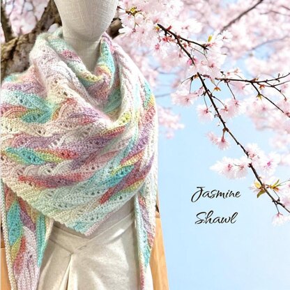 **The Jasmine Shawl** is created using short rows and slip-stitch variations, and integrated into the ribbing edges.