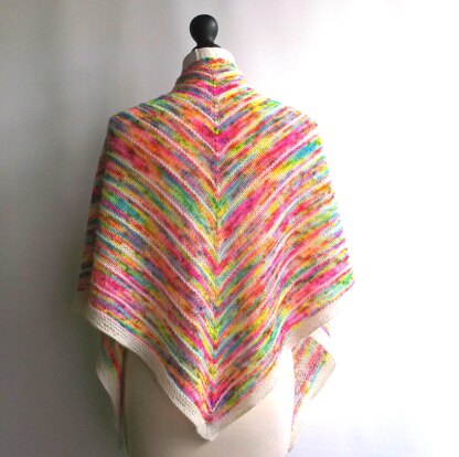 This pretty triangle shawl is worked top down from a garter tab cast on. Bands of raised garter stitch separate sections of color, producing a bright and light garment!