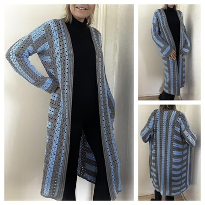This easy block stitch pattern, is going from bottom up and sideways, to give you this interesting design. The cardigan is mostly made vertical, so it will fit any size with hardly any adjusting at all. Let my pattern lead you to a lovely result, by way of step by step easy to follow instructions , pictures and YouTube video's for extra guidance. And in addition; via mail I can always give you some personal assistance.