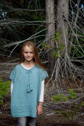 A diamond textured poncho with tassels and garter stitch finishing. Geometric diamond motifs give this merino poncho lasting appeal. Worked from charts in textured knit and purl stitches. A fun piece to wear on those many childhood adventures.