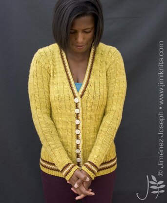 Cricket - an English sport with a long tradition and unique style. Jimi Cricket takes on this theme by featuring cables and ribbing, put together in this slimline cardigan. With deep v-neckline and fun colour combinations, this cardigan naturally flatters your shape while keeping you luxuriously warm.