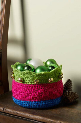 Jingle Bells Basket in Red Heart Celebration - LW3666 - Downloadable PDF is a free Intermediate Crochet pattern by Katherine Eng, available as a Downloadable PDF and includes instructions in English. Super fun to make, this pattern could be your next masterpiece!