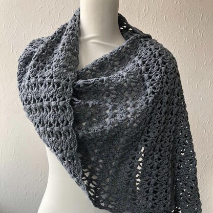 Joanne is a modern rectangle shawl that uses clusters and puffs to create a lacy repeating pattern. Beginner friendly, this shawl pattern works up quickly and uses familiar stitches in a slightly different way.