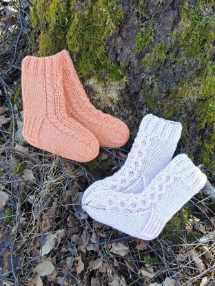 Josefiina ja Joanna -palmikkosukat sisältävät kaksi erilaista lapsen palmikkosukkien ohjetta. Kumpikin ohje on noin 1-3 -vuotiaan koko, mutta jalkapohjan pituutta voi neuloa pidemmäksi tai lyhyemmäksi riippuen lapsen jalan koosta. Ohje sopii myös aloittelijalle, mutta ohjeissa on suhteellisen paljon palmikon kiertoja. Palmikot ovat kuitenkin toistuvia, yksinkertaisia ja ne oppii helposti.